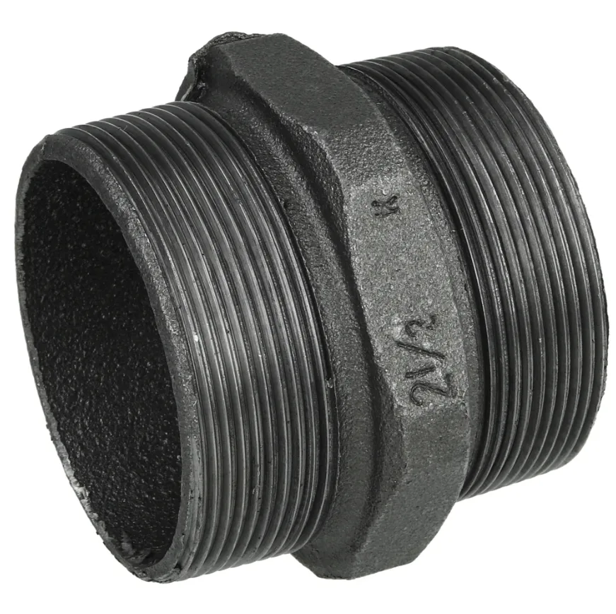 Zwart gietijzeren fitting met Whitworth buisdraad. DVGW en SVGW gecertificeerd en onbeperkt inzetbaar voor gas- en drinkwaterinstallaties.