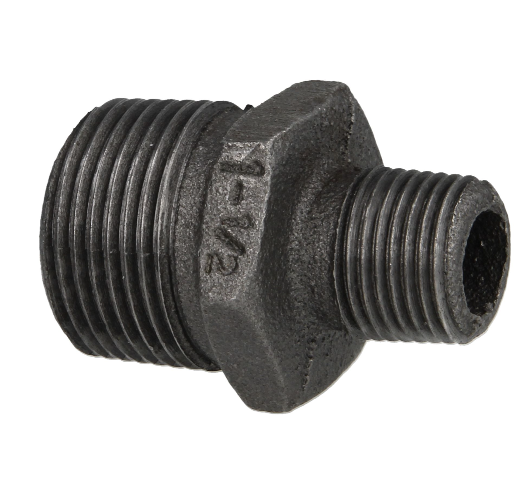Zwart gietijzeren fitting met Whitworth buisdraad. DVGW en SVGW gecertificeerd en onbeperkt inzetbaar voor gas- en drinkwaterinstallaties.