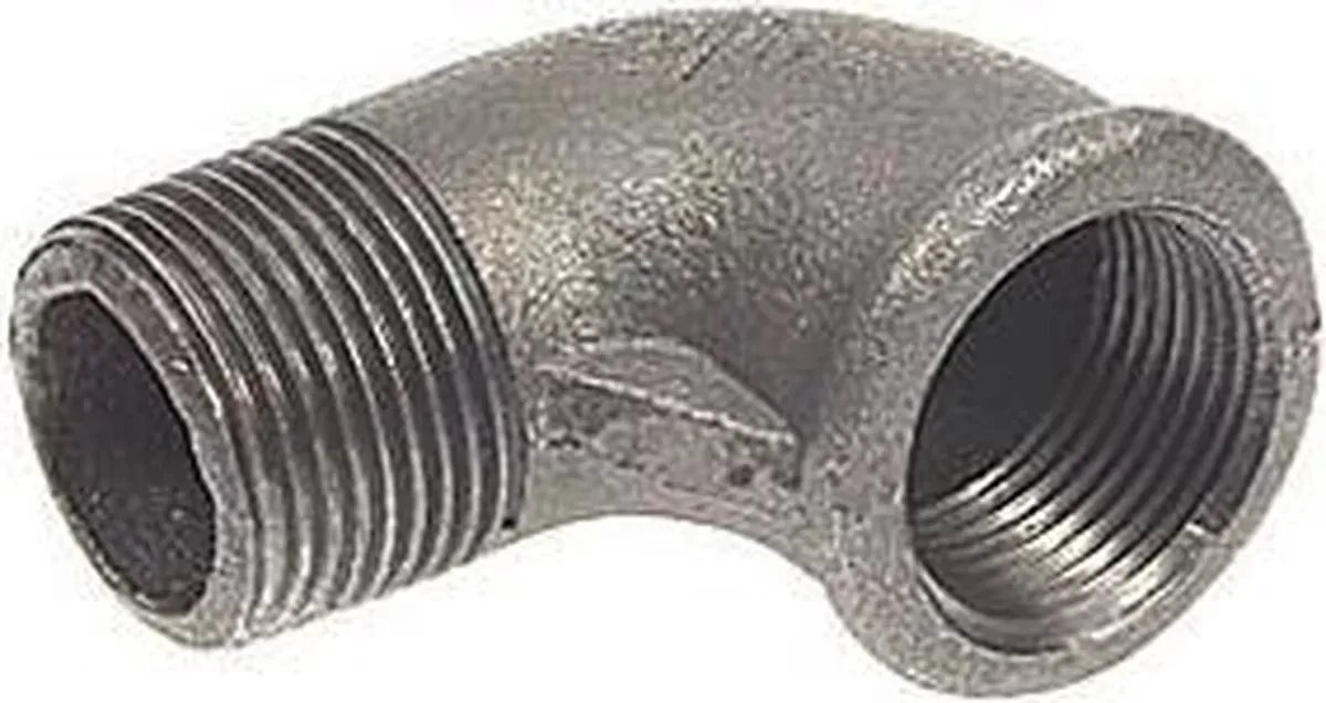 Zwart gietijzeren fitting met Whitworth buisdraad. DVGW en SVGW gecertificeerd en onbeperkt inzetbaar voor gas- en drinkwaterinstallaties.