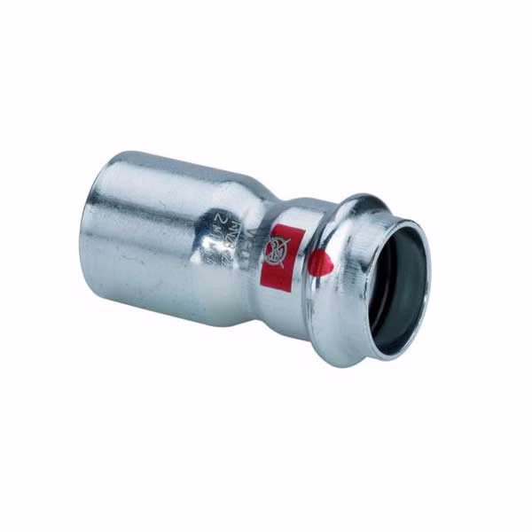 Viega Prestabo 1115.1 fitting met 2 aansluitingen 1-delig, lengte 65mm, recht, uitwendige buisdiameter aansluiting 28mm, aansluiting 1 staal, uitwendige buisdiameter aansluiting 22mm, aansluiting 1 insteek, aansluiting 2 persmof, oppervlaktebescherming aansluiting elektrolytisch verzinkt,